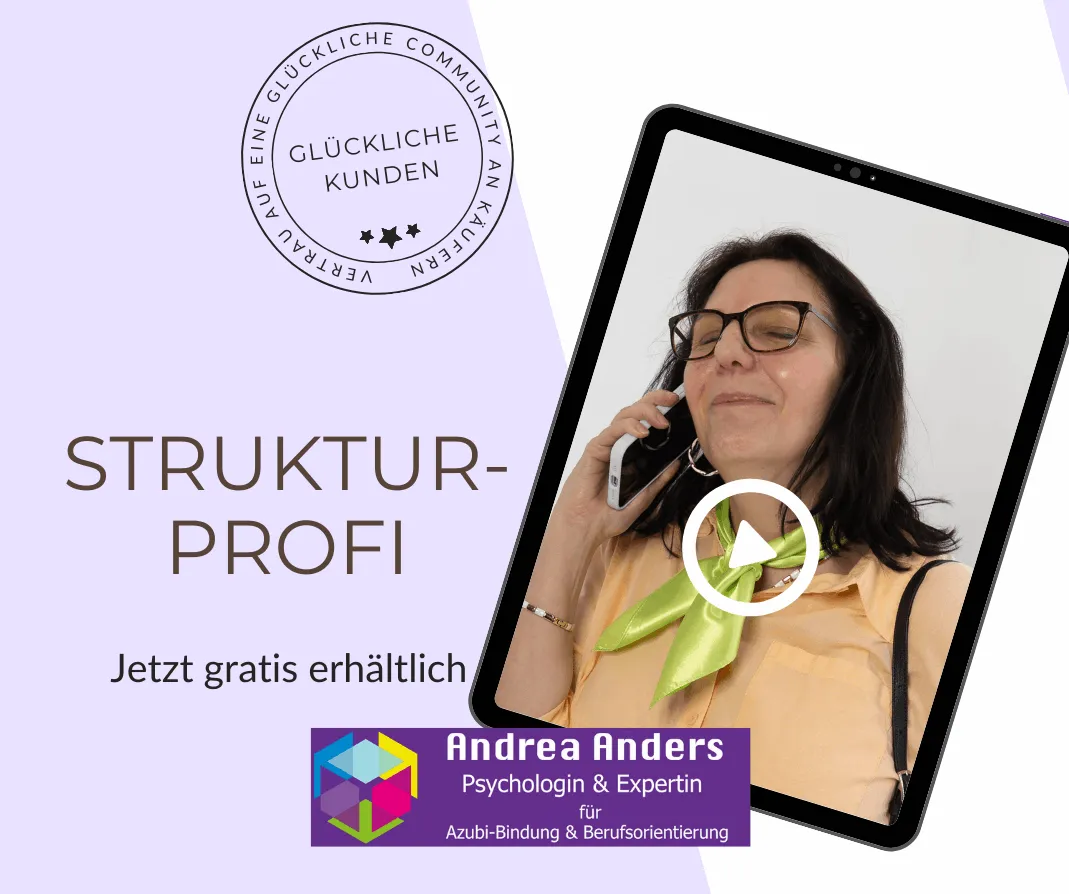 👉🏽 “Die 5-Ayavira-Baustein-Strategie, die ihr auch ohne externe Hilfe in eurem Betrieb umsetzen könnt – für entspanntere Ausbilder, motivierte Azubis und deutlich weniger Abbrüche! Basierend auf psychologischen Erkenntnissen aus 9 Jahren täglicher Arbeit mit Berufsanfängern!”